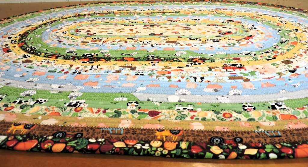 Prineste radosť svojim najmenším z objavovania farmy do vášho domova. Spoločne môžete objavovať a počítať zvieratká žijúce na farme, pomenovávať ovocie a zeleninu pestovanú na farme a predstavovať si burácanie traktorov pracujúcich na farme. Kúpou pestrofarebného Jelly-Roll koberca, vytvorte deťom nie len zábavu ale i skvelý spôsob, ako podporiť ich kreativitu a vzdelávanie. Koberec Jelly-Roll je ušitý zo 100 % bavlnenej látky, výplňou koberca je bavlnený vatelín, vďaka čomu je koberec mäkký na dotyk. Ak sa vám koberec ušpiní, vyperiete ho ľahko v práčke na 30 stupňoch teploty vody a voľne vysušíte. Koberec NESUŠTE v sušičke na prádlo! Koberec uložený na tvrdej podlahe sa môže šmýkať. Odporúčam použiť protišmykovú podložku pod koberec.