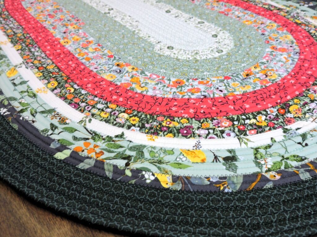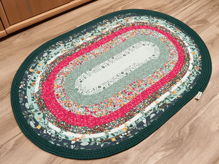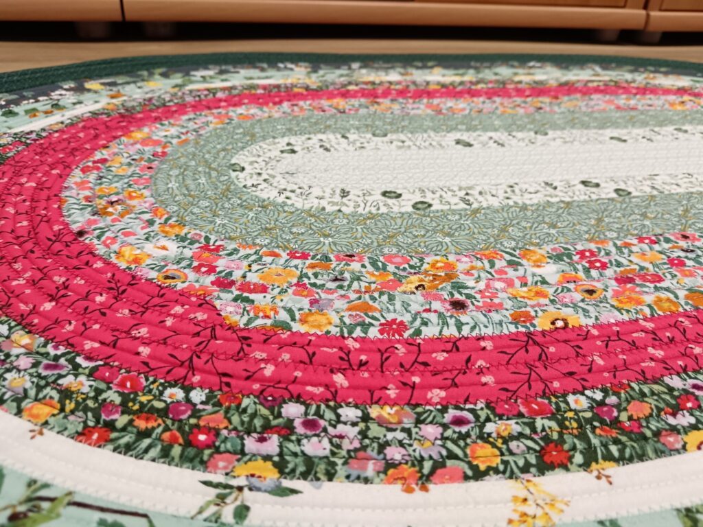 Ručne šitý koberec vyrobený zo 100 % bavlnenej látky z kolekcie "Plentiful" od dizajnérky Katarina Roccella výrobcu Art Gallery Fabrics. Koberec Jelly-Roll je ušitý zo 100 % bavlnenej látky, výplňou koberca je bavlnený vatelín, vďaka čomu je koberec mäkký na dotyk. Ak sa vám koberec ušpiní, vyperiete ho ľahko v práčke na 30 stupňoch teploty vody a voľne vysušíte. Koberec NESUŠTE v sušičke na prádlo! Koberec uložený na tvrdej podlahe sa môže šmýkať. Odporúčam použiť protišmykovú podložku pod koberec.