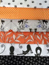 Halloween koberec Jelly-Roll pre mačičky v okrúhlom tvare. Môžete ho použiť ako podložku pod misku pre mačičku, alebo ako dekoráciu v interiéri. Koberec je ručne šitý zo 100 % bavlnenej látky vo farbách jesene s tematikou Helloween. Ak sa vám koberec ušpiní, vyperiete ho ľahko v práčke na 30 stupňoch teploty vody a voľne vysušíte. Koberec NESUŠTE v sušičke na prádlo! Koberec uložený na tvrdej podlahe sa môže šmýkať. Odporúčam použiť protišmykovú podložku pod koberec.