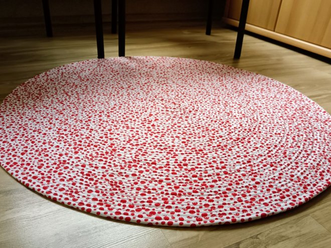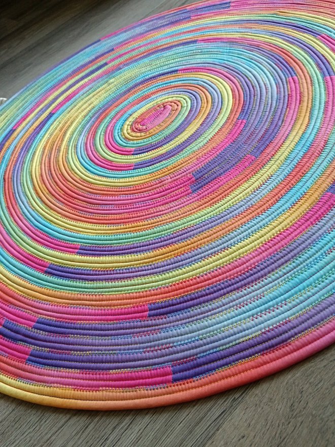 Koberec Jelly-Roll sa zrodil v malom obchode s prikrývkami v malom vidieckom mestečku Utahu v USA. Možno vám bude pripomínať koberce, ktoré šili naše babičky zo zvyškov látok z opotrebovaného oblečenia, stočili ich a ručne zošili do tvaru koberca. To bola základná myšlienka.